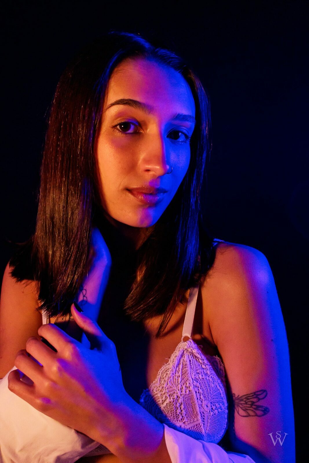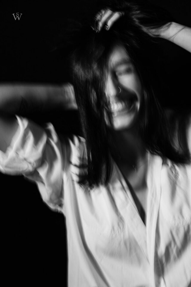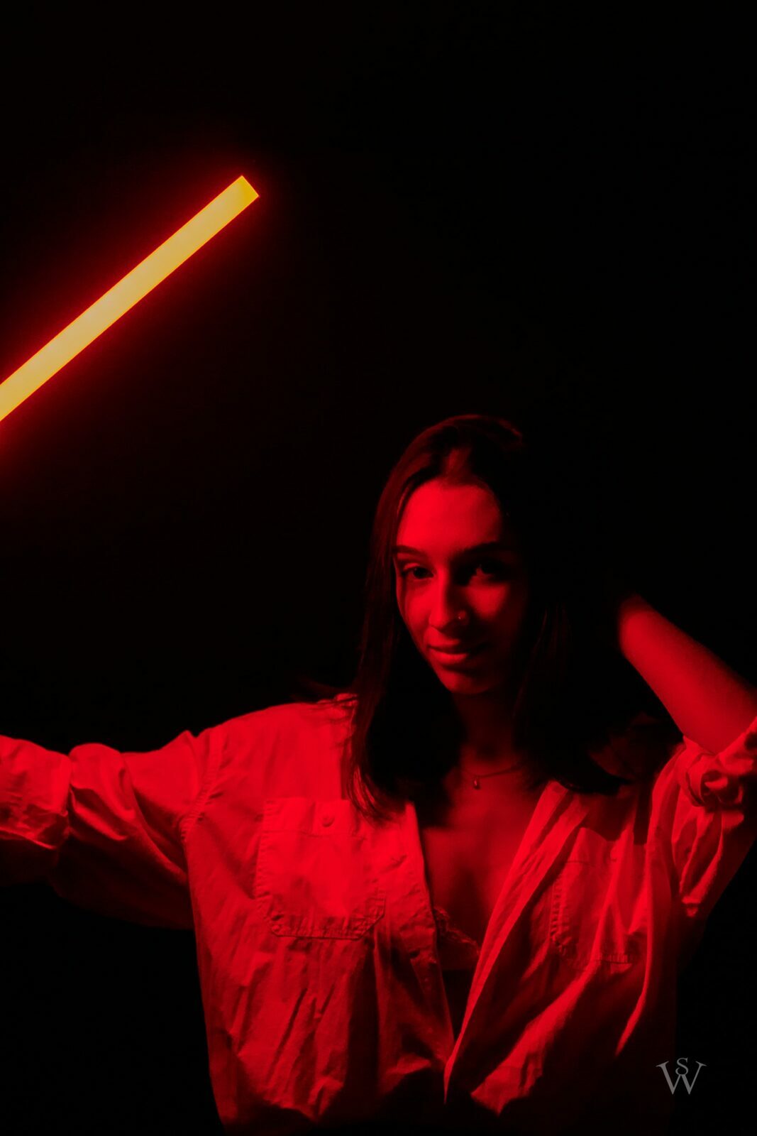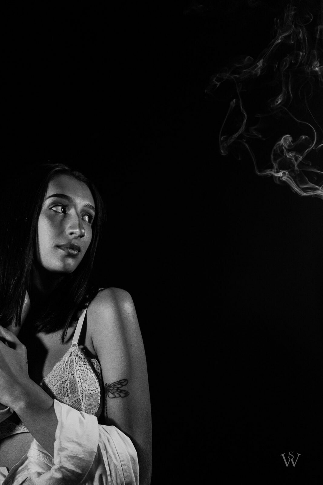 O resultado dessa empolgação? Fotos em movimento, com fumaça, luz colorida, diferentes esquemas de iluminação, fundos trocados de branco para preto… tudo no mesmo ensaio!
