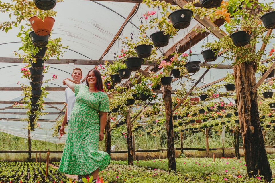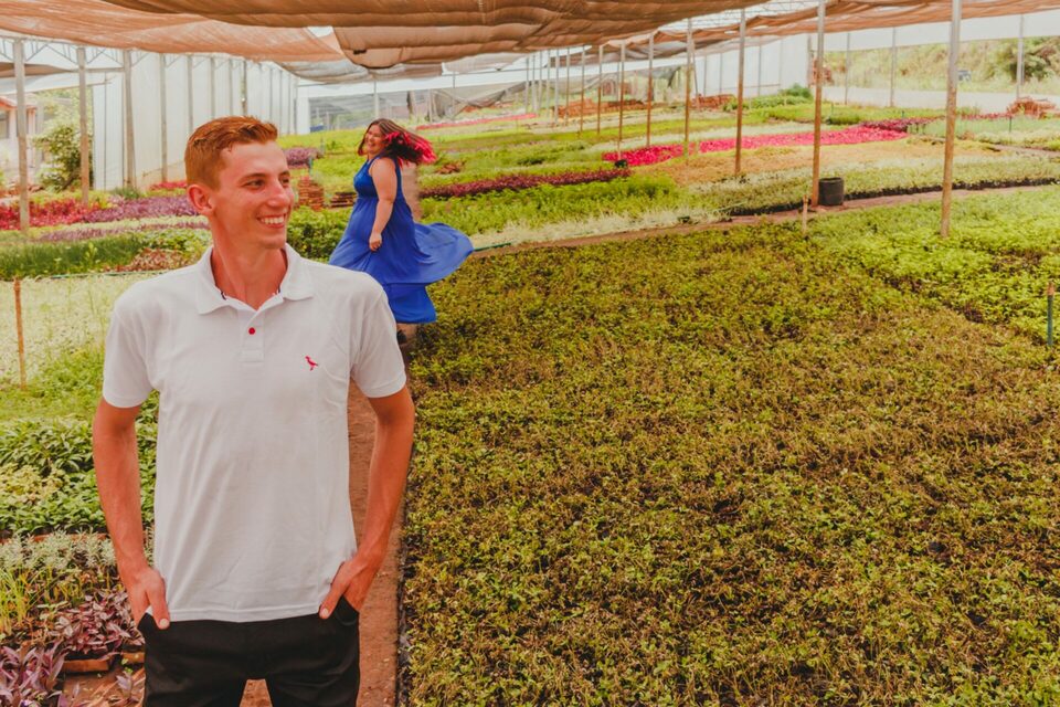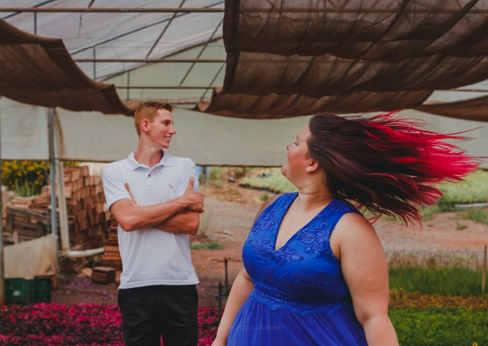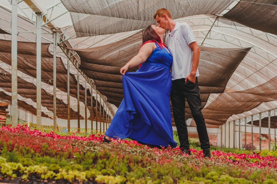 O dia do ensaio foi um capítulo a parte nessa história! A família do Bruno possui estufas de flores no interior de Lindolfo Collor, vendem para muitas cidades e acompanha todas as gerações. Logo, me pediu para que as fotos acontecessem ali e eu, como um bom adorador de desafio e atraído pelo diferente, não pensei duas vezes e topei a ideia - entendeu agora a primeira linha dessa história?