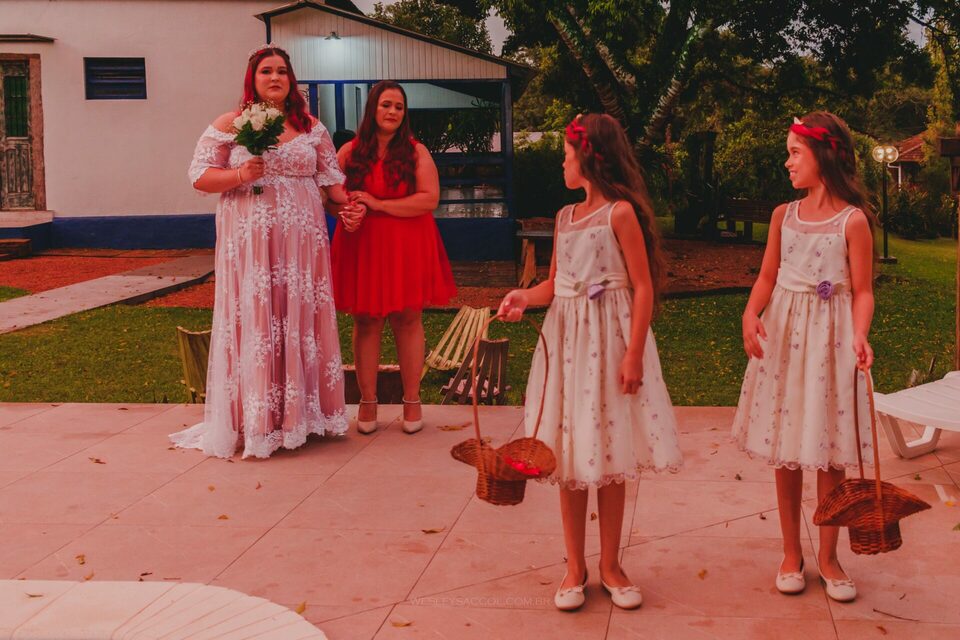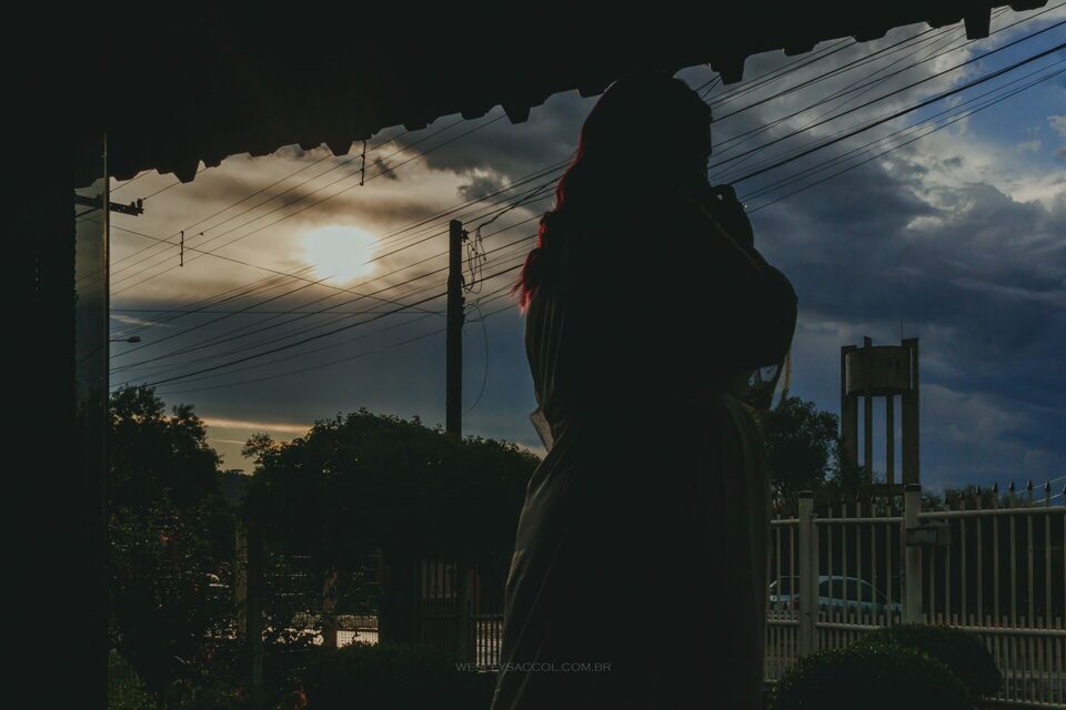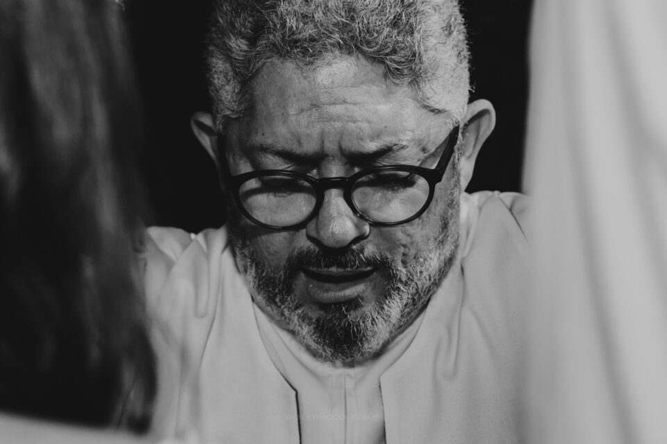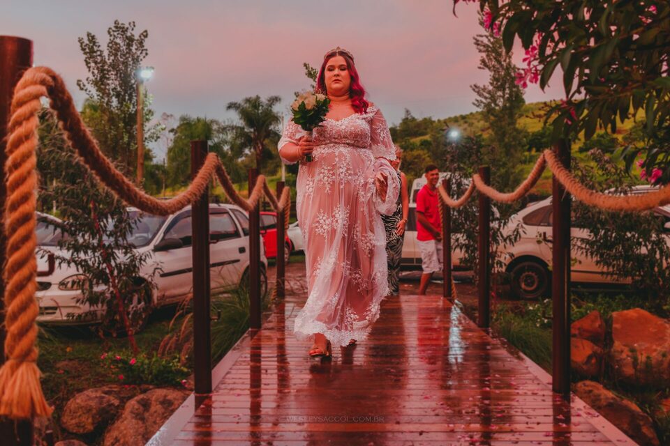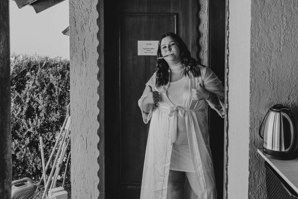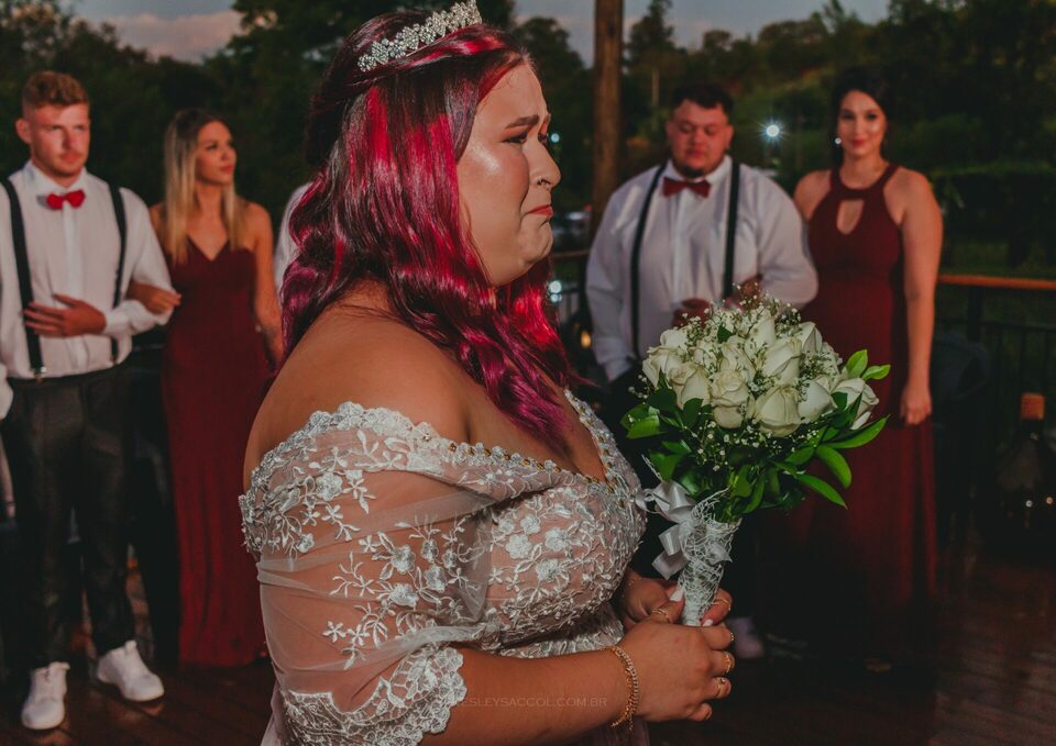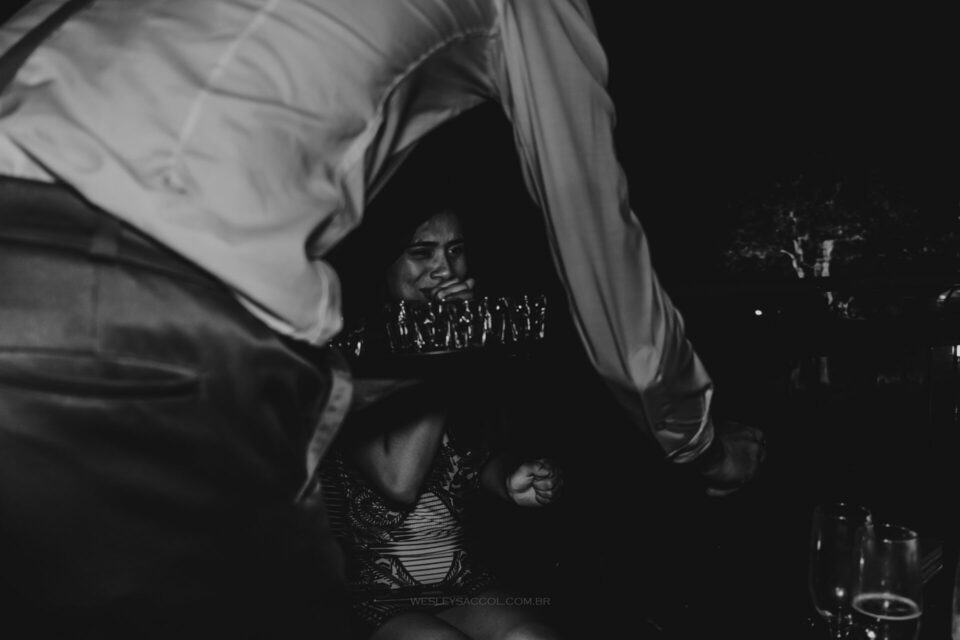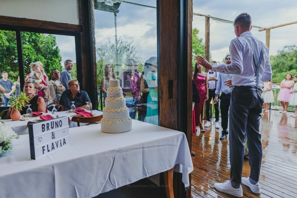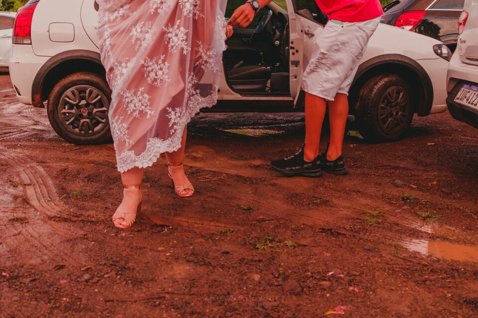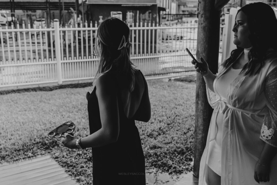 Vendo toda a situação do tempo e do que acontecia no local do casamento, bateu o nervosismo e apreensão na Flávia e coube a mim conversar com ela para tentar tranquilizá-la e passar uma positividade neste momento.