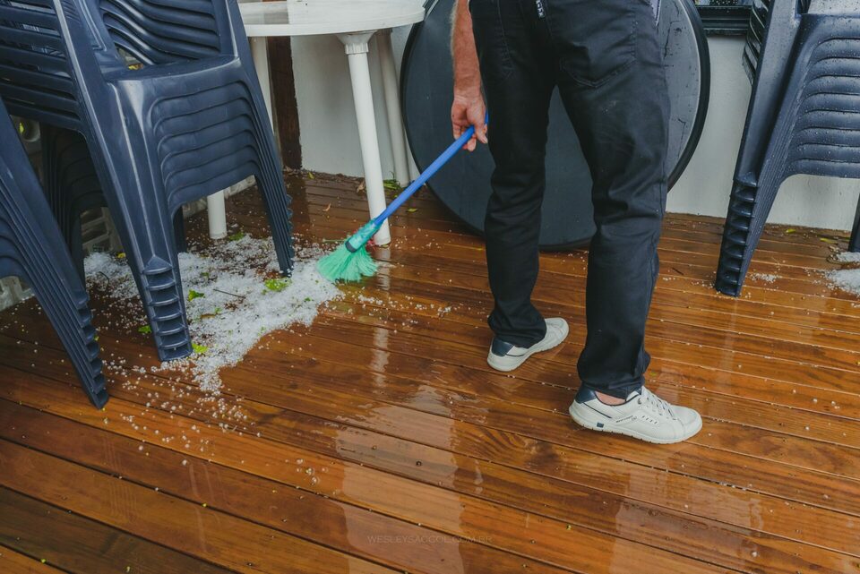 Todo o deck foi preparado para isso, inclusive lonas foram colocadas para conter a água da chuva! Conforme citei acima da chuva, a lona do deck não aguentou o peso da água e força do granizo e acabou cedendo!