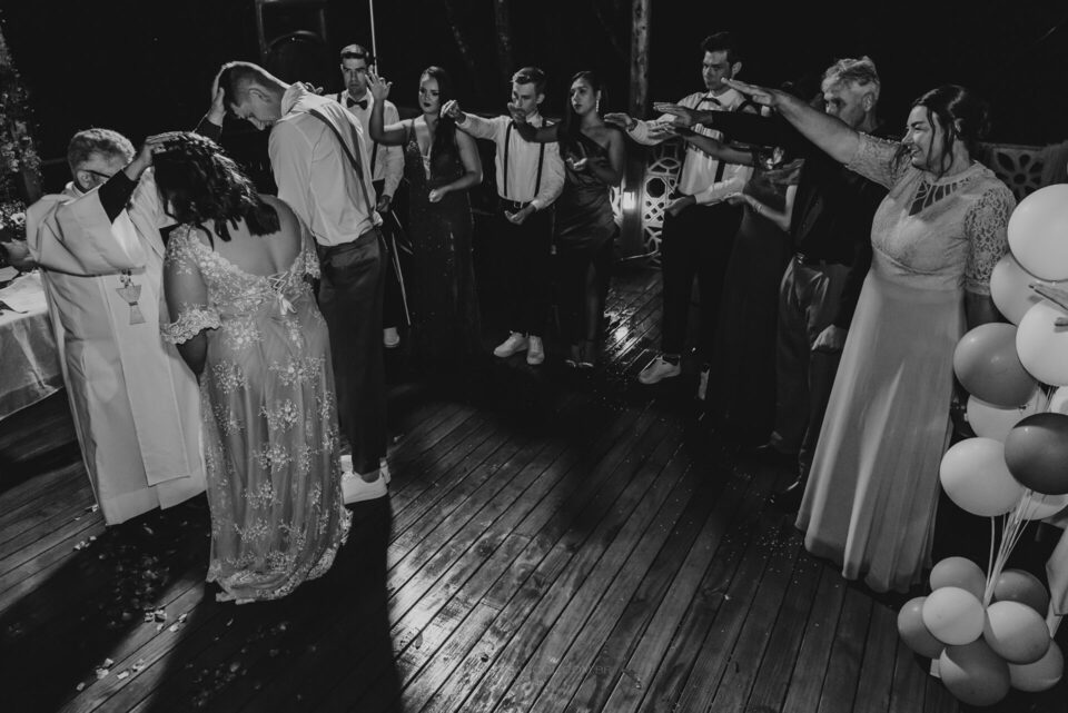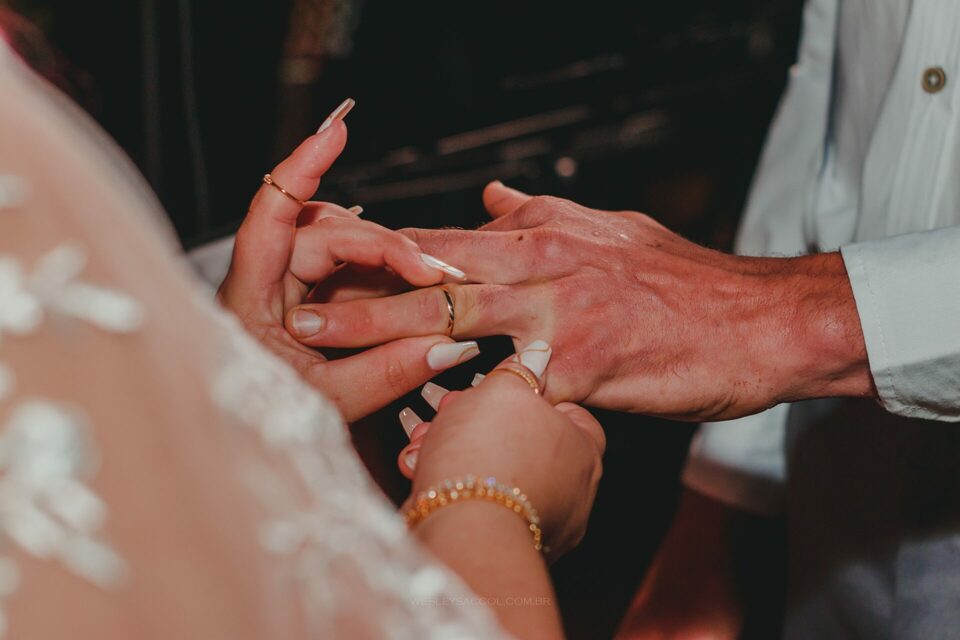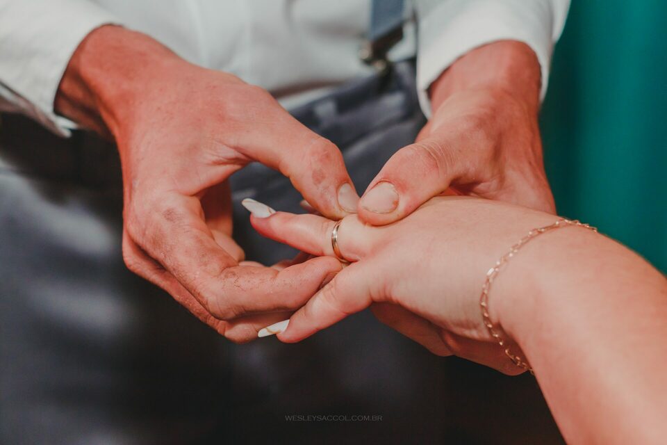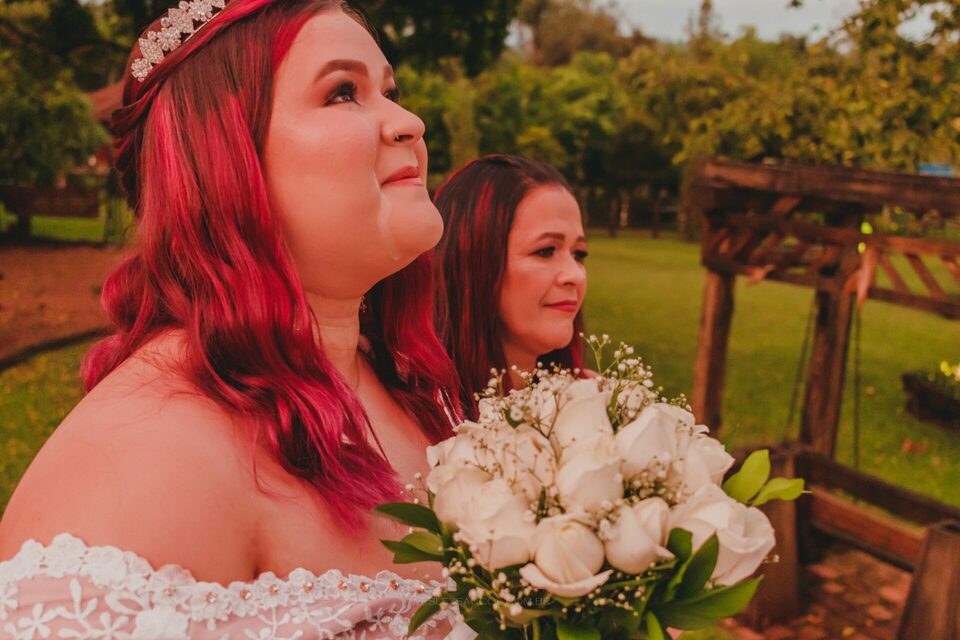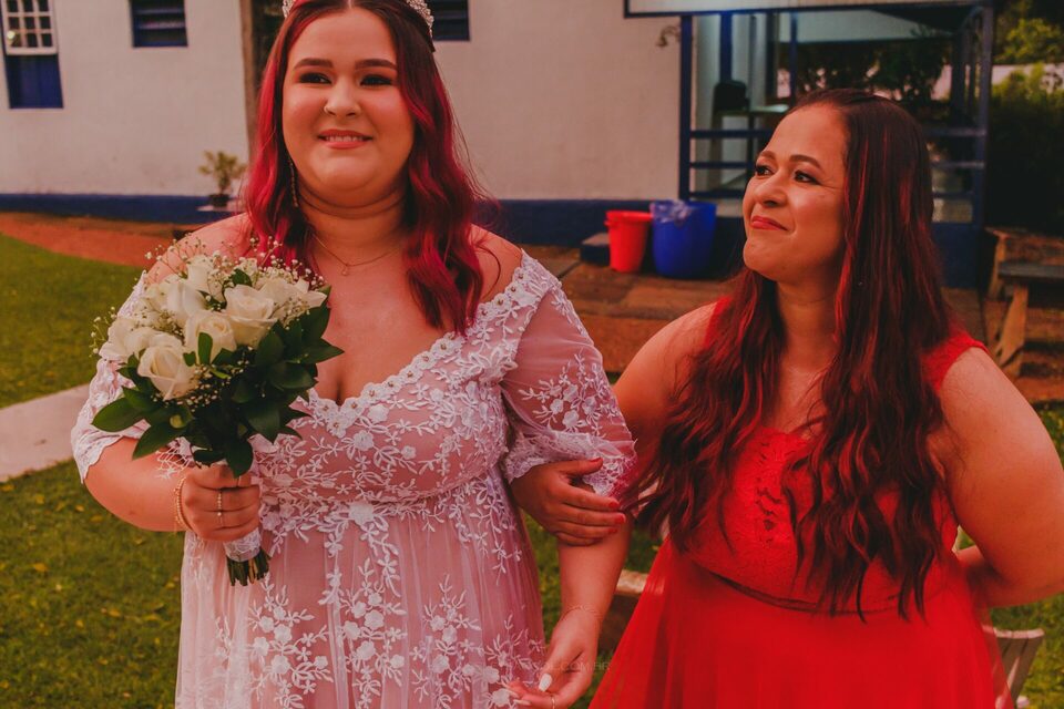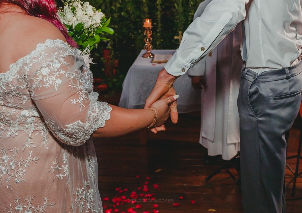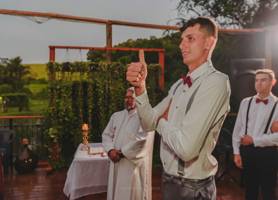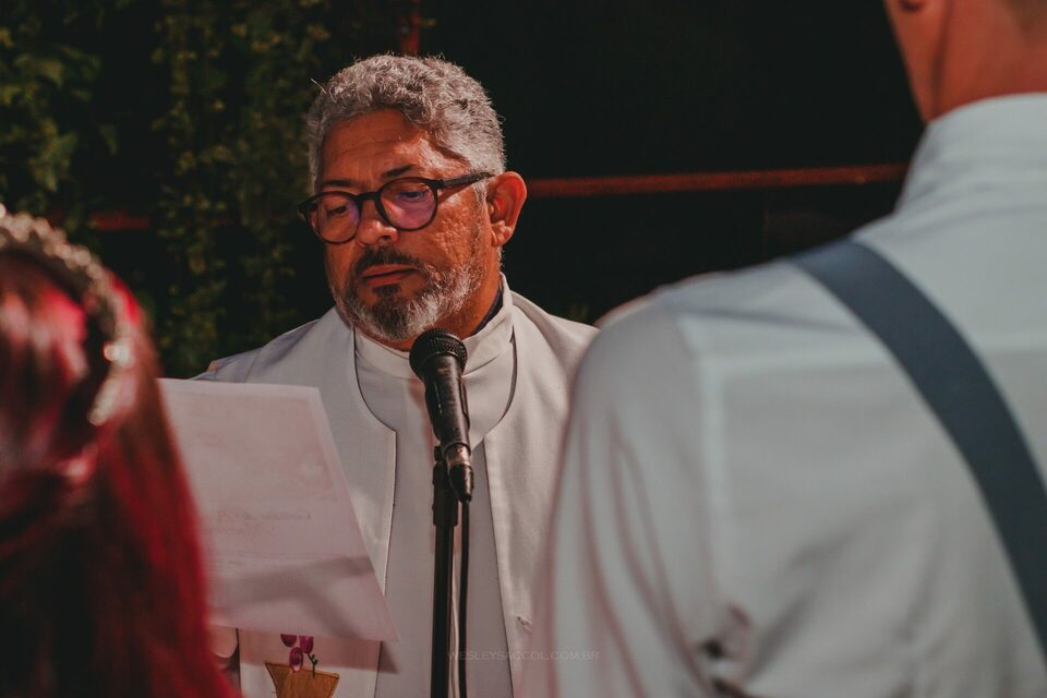 Depois que o tempo cessou e com um leve atraso (padrão no dia do casamento), inicia-se a cerimônia: entram os padrinhos, os pais, o Bruno e, por fim, a Flávia com a sua mãe! O momento como um todo foi repleto de emoção e com muita lágrima escorrendo pelos olhos de todos, pois o Bruno e a Flávia são aquele tipo de casal de uma vibe muito boa, muito conectados entre si, pessoas simples e merecedores do que têm hoje por serem quem são.