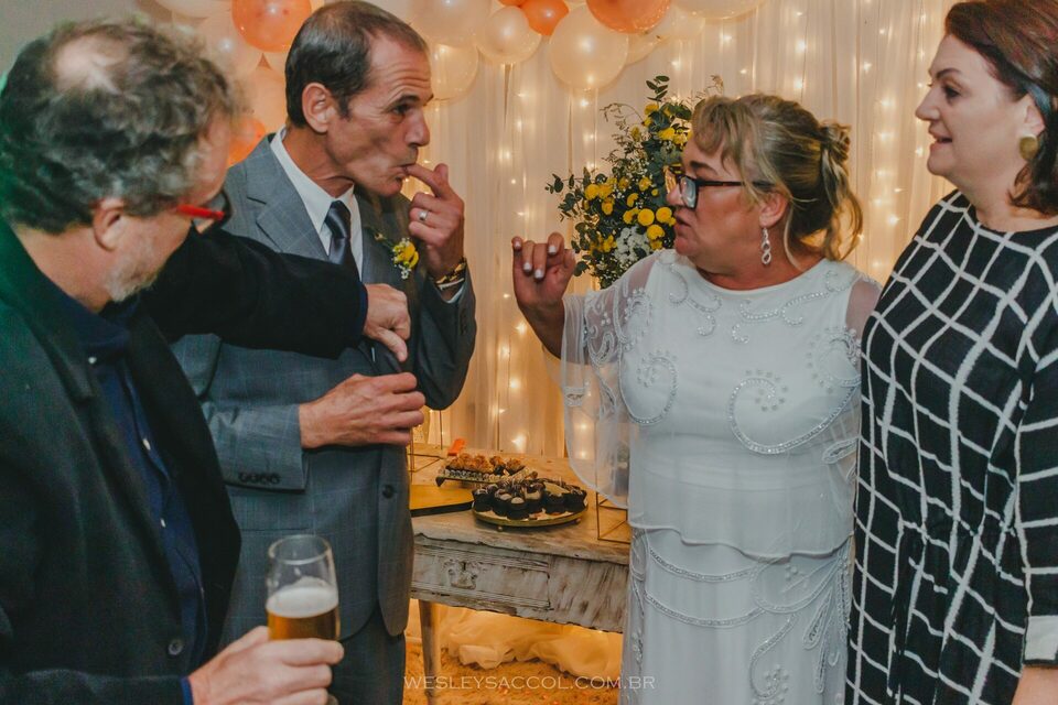 Recordo-me muito bem que, na reunião virtual realizada com a Marcia, ela mencionou sobre o curto tempo de festa que teria por conta da idade do público presente e que os dois não eram muito disso. Pude presenciar e registrar naquele dia uma entrega total e um aproveitamento de cerimônia e festa que não estava no gibi por parte dela e do Simon (algo totalmente diferente do que ela me trouxe, mas um diferente positivo).