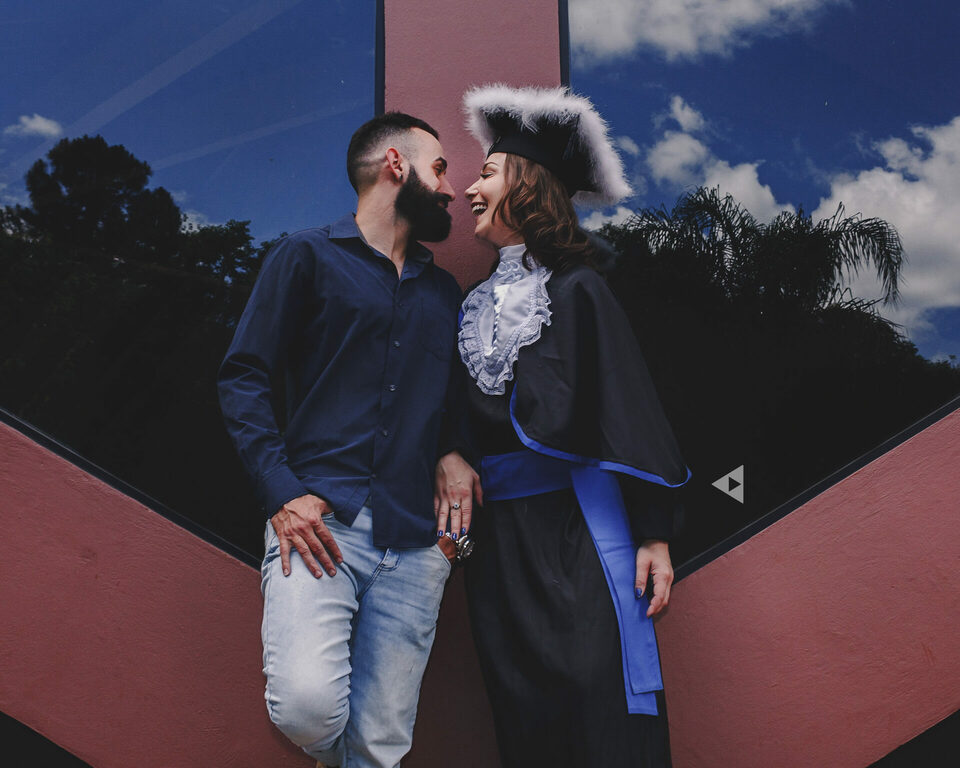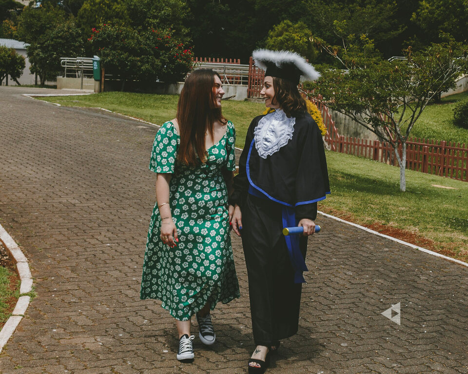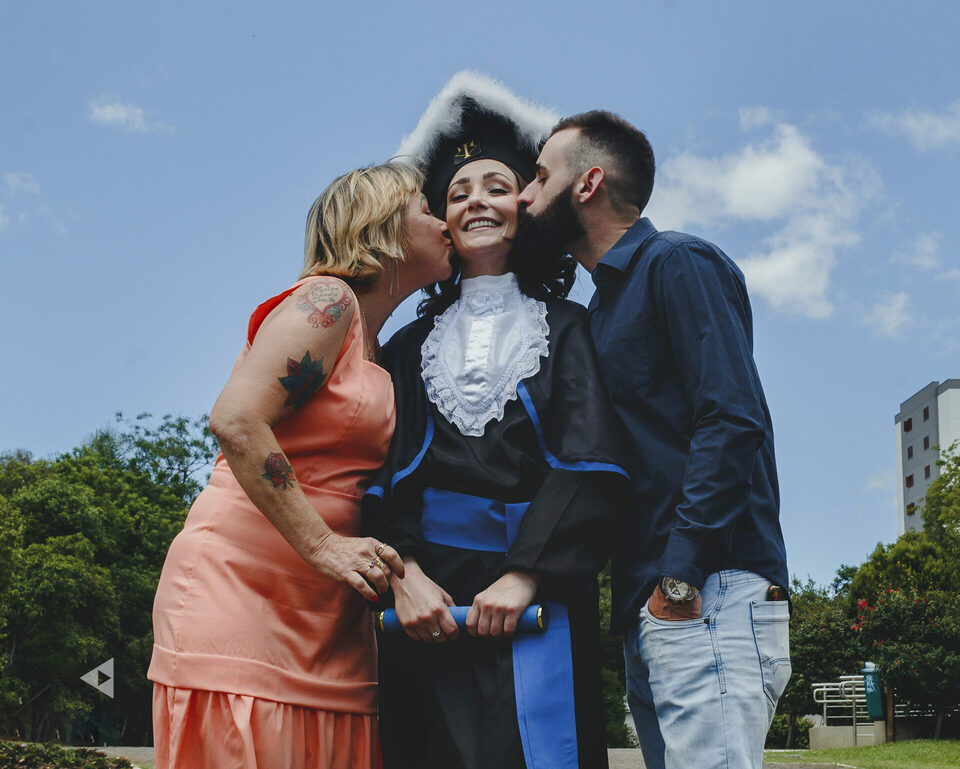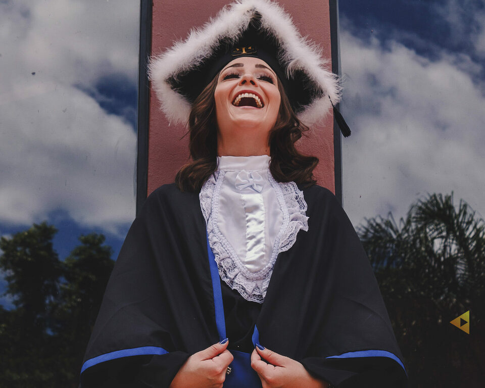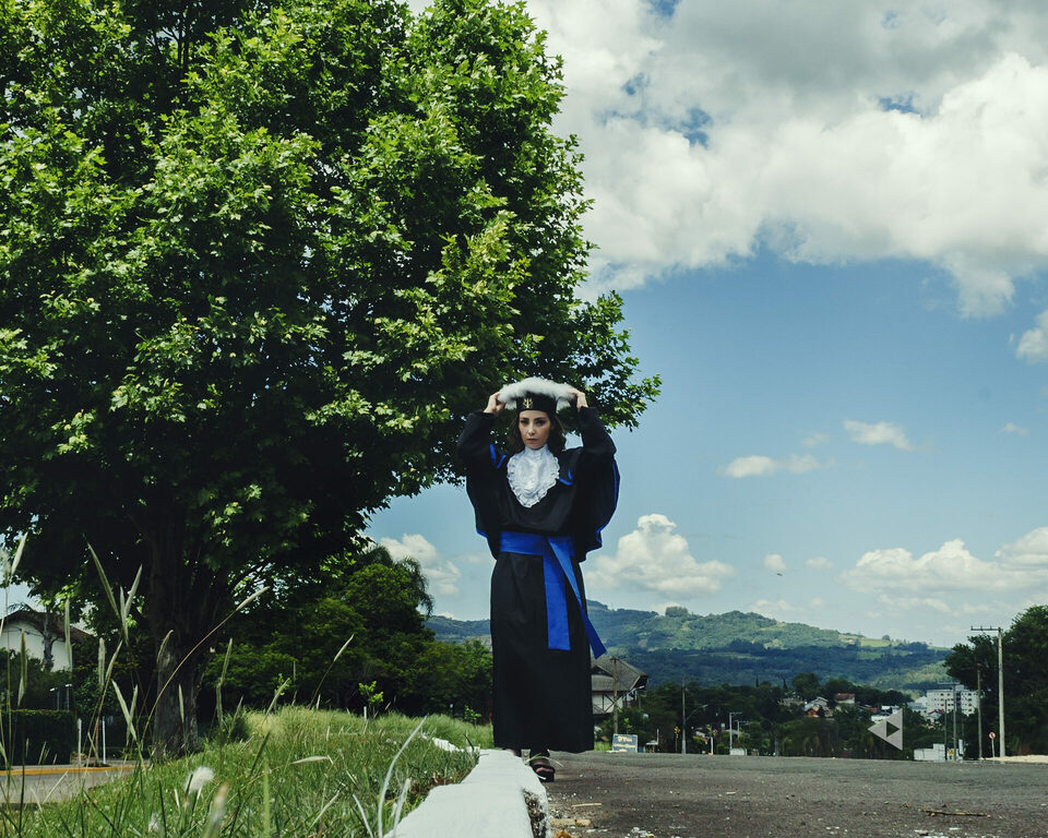 Depois da preparação no John, fomos ao parcão - e ali eu vi um desafio e tanto de surpreender! Para ti que não conhece o Parcão (ou o nome correto: Parque Municipal Romeo Benício Wolf), é o parque da cidade que é um dos locais mais escolhidos por quem quer fazer um ensaio pela beleza que o espaço tem. Mas, como eu sempre digo, nada que um bom desafio para me mover e me estimular a surpreender meu fotografado - e foi exatamente isso que aconteceu! Desde as fotos posadas, tradicionais até as clássicas de uma prova de toga, como jogar o capelo pra cima!