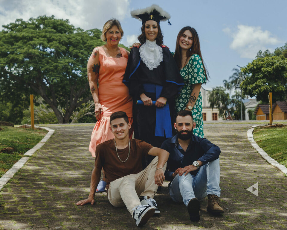 Quando o namorado dela, o Lorran, me contatou sobre este momento, me trouxe a ideia de fazermos em Dois Irmãos mesmo e fotos dela, dos dois e das pessoas que foram importantes e estiveram junto a ela nesta caminhada!